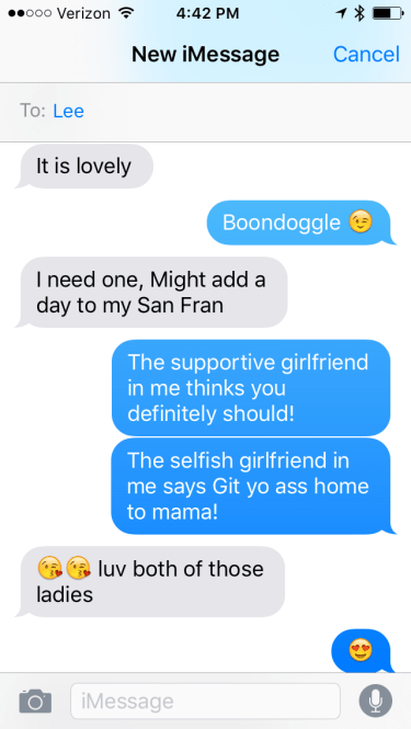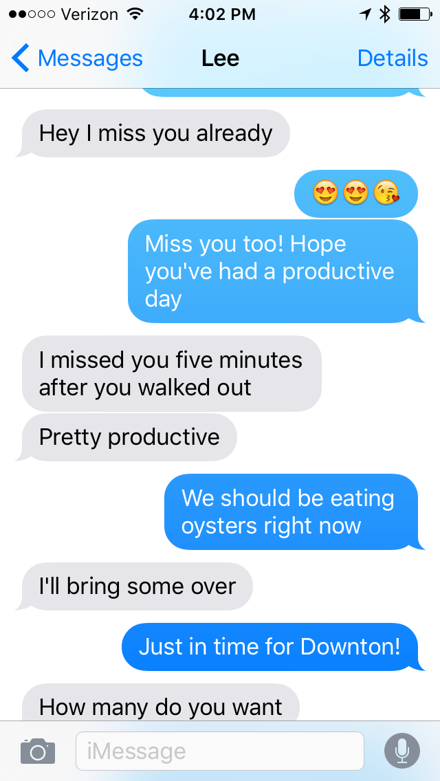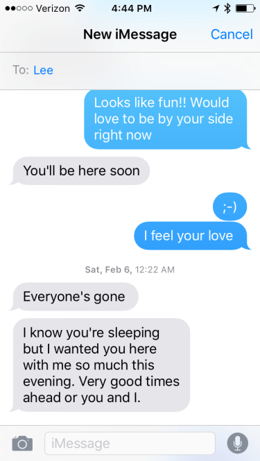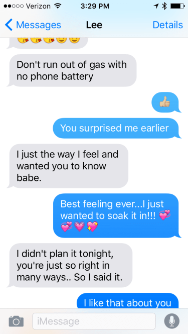 But I was there. I (blue bubbles, below) was crazy about him. And he (gray) was crazy about me. Here are just a few examples: